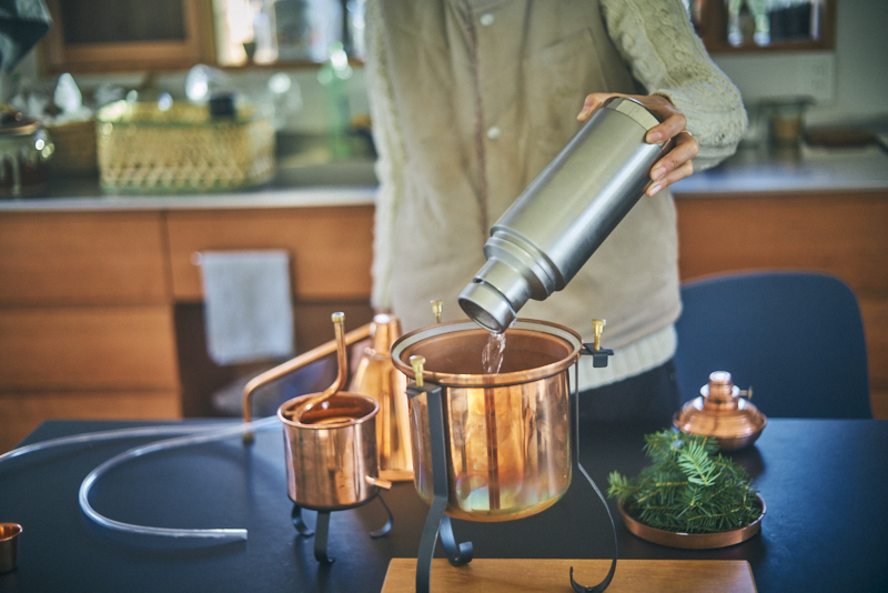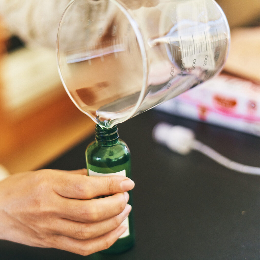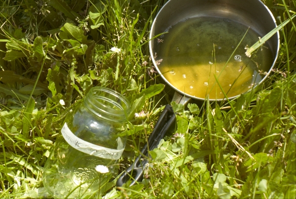 ポットにお湯を沸騰させ、新鮮なカモミール 3カップを入れ 45分煮詰め冷蔵庫で保存する。