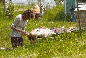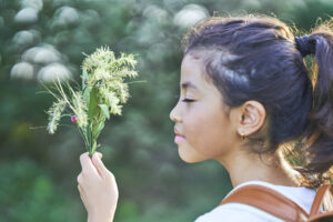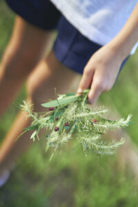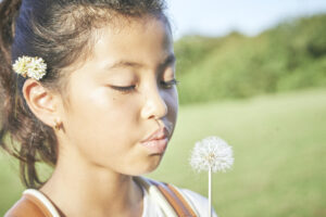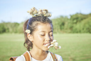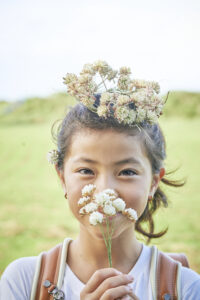 太陽がふりそそぐ暖かい日 カモミールエキスに浸した髪をそのまま洗い流さずに自然乾燥。