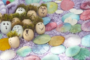 貝で作った石鹸置きや卵の盆栽 なんとも素敵です。